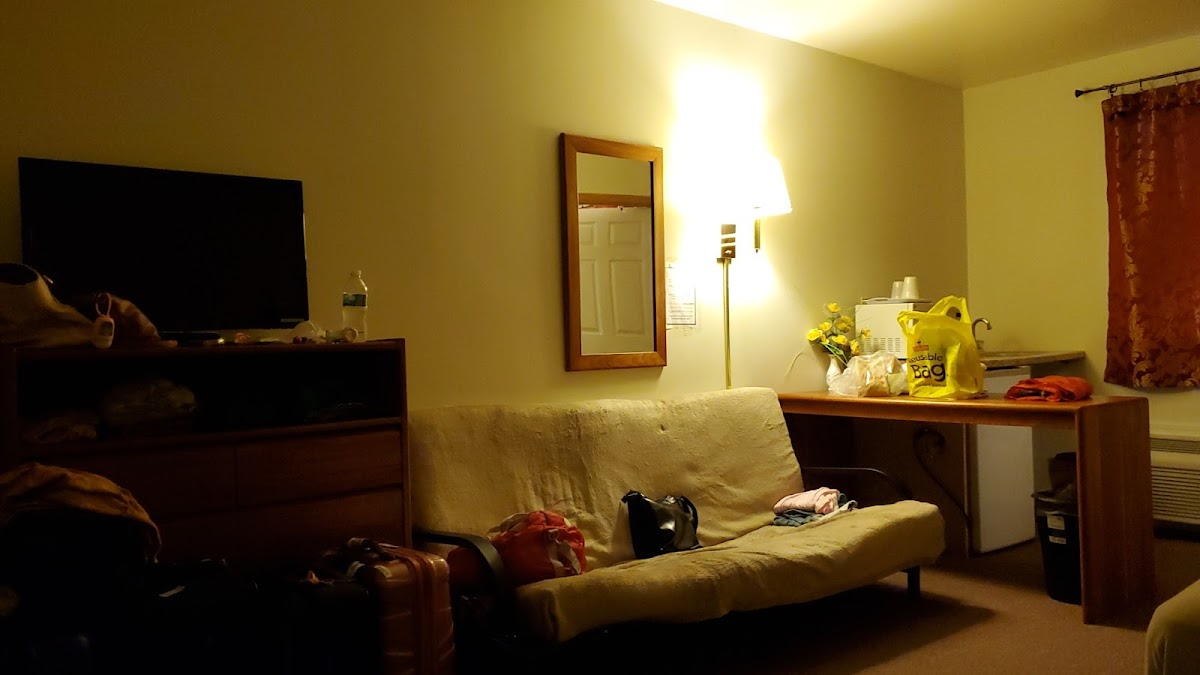 Located off of the Niagara Falls Blvd and is about a 20 minute drive to/from the Niagara Falls State Park. Good for those driving or renting a car since there's no public transportation nearby and this locality is not safe for walking. The rooms are very clean and equipped with a small refrigerator and microwave. The bathroom has a stand-in shower which is quite small but neat and tidy (no bath tub). Recommend carrying additional toiletries (soap and shampoo at least). There are a couple of Walmarts nearby (5 miles approx in either direction). Both check-in and check-out were super friendly. I was not asked for a security deposit at check-in. The basic room is good enough for a couple and maybe a small kid.